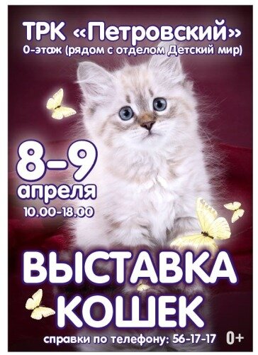 На нулевом этаже ТРК "Петровский" в эти выходные пройдёт Международная выставка кошек по системе WCF.